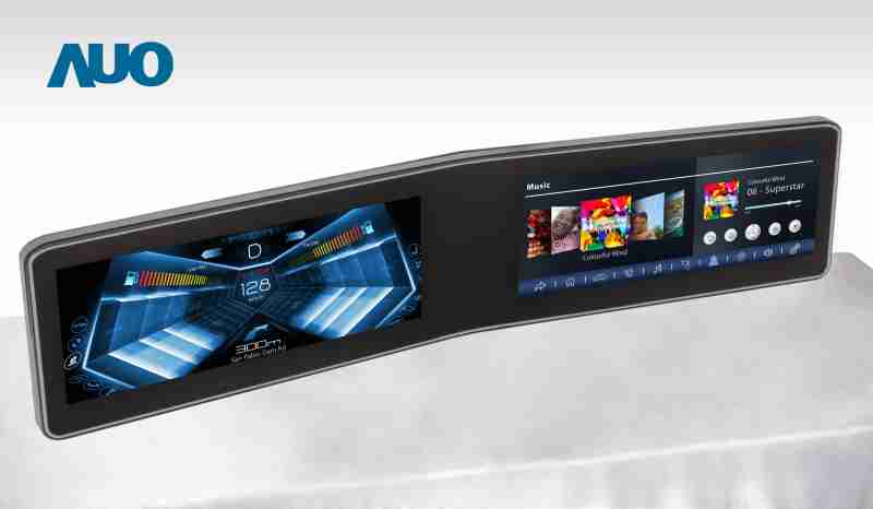 28国际 V 型曲面驾驶舱显示器,,,采全贴合拼接仪表板及中控台显示屏