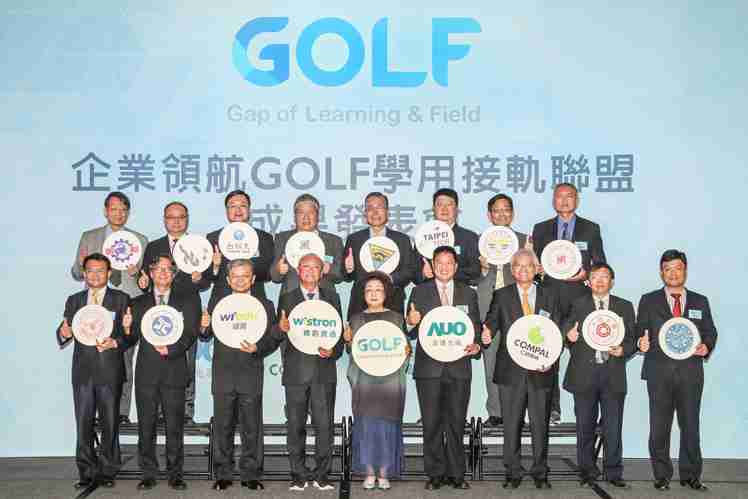 GOLF学用接轨联盟集结企业和学校的力量,,打造「学用合一、、、、产学接轨」的创新合作平台 (前排左起:淡江大学副校长何启东、、元智大学校长林启瑞、、、纬育执行长许延岳、、、、纬创总经理暨执行长黄柏漙、、、、教育部政务次长范巽绿、、28国际董事长暨执行长彭双浪、、仁宝总经理暨执行长翁宗斌、、、大同大学校长何明果、、圣约翰科大校长艾和昌;后排左起:明新科大校长林启瑞、、龙华科大校长葛自祥、、、、台湾科大校长廖庆荣、、中兴大学副校长郑政峯、、中央大学校长周景扬、、、、台北科大副校长任贻均、、中华科大副校长石大明、、明志科大校长刘祖华)