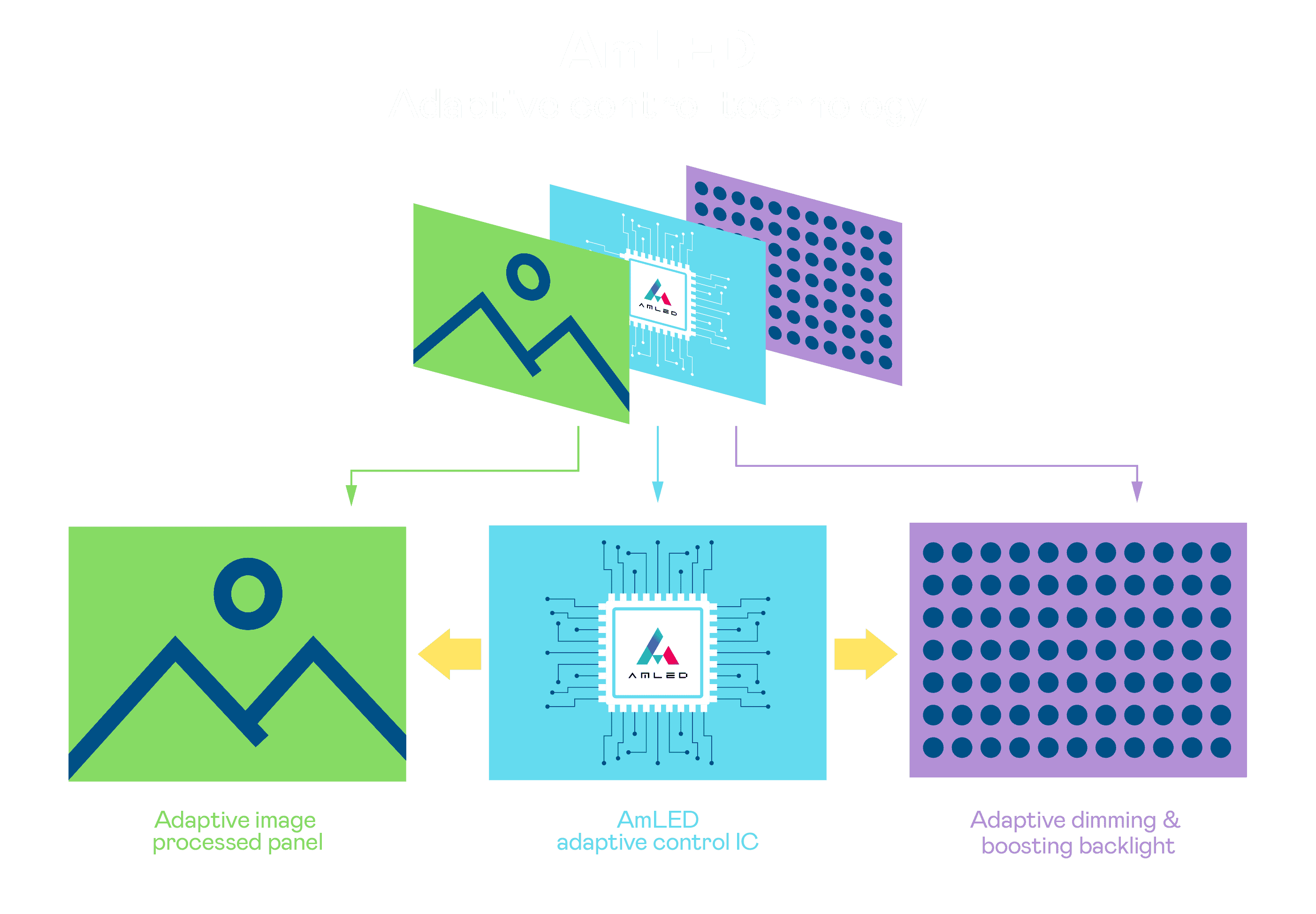 AmLED 具备更省电与低蓝光特性。。。与一般的 LED 背光显示技术相比,,,,由于 AmLED 常时处于局部调光状态,,其功耗仅有前者的 50% 左右,,同时 AmLED 还具备低蓝光特性,,,满足长时间使用的护眼需求。。
