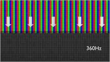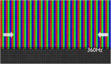 传统液晶驱动是从左到右单向进行,,,在画面更新速度愈来越愈快的情况下,,,位于驱动线路末端的右下角区域,,画素的闸极来不及在短时间内获得足够电压,,无法显示出正确的颜色资讯。。。。 |